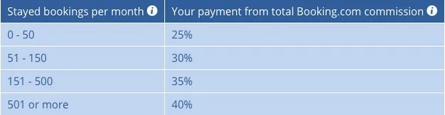 Your earnings depend not only on the number of stayed bookings, but also on the commission that the specific accommodation pays to Booking.com. The accommodation’s commission usually ranges between 10-20%, depending on factors such as the country where the accommodation is located.